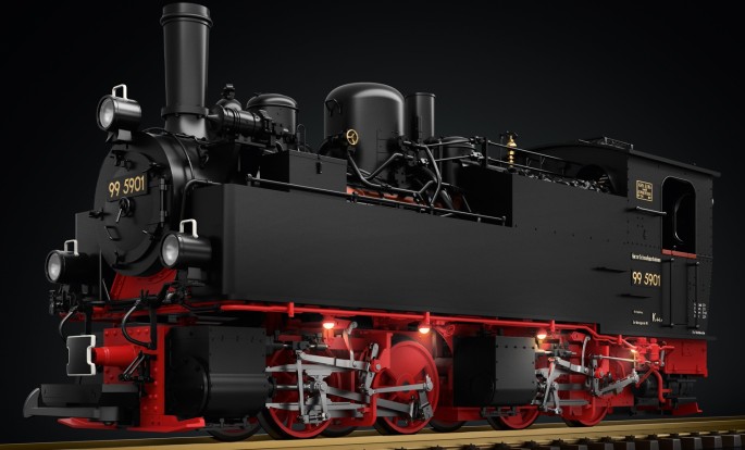 Das LGB Modell der 99 5901 als Museumslok zeigt die Farb- und Beschriftungsvariante der DRG der 1930er Jahre - Art. 26591