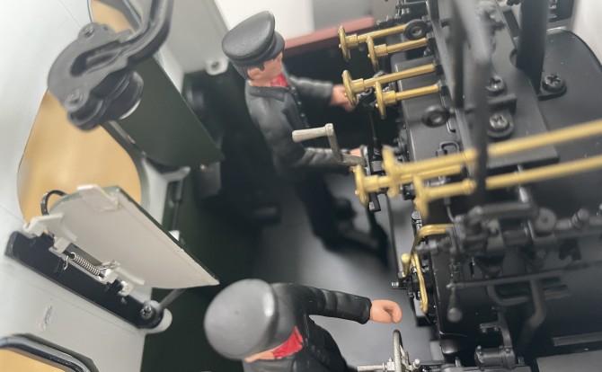 Der Führerstand steckt voller Details. Ein besonderer Augenschmaus sind die profilierten messingfarbenen Handräder.