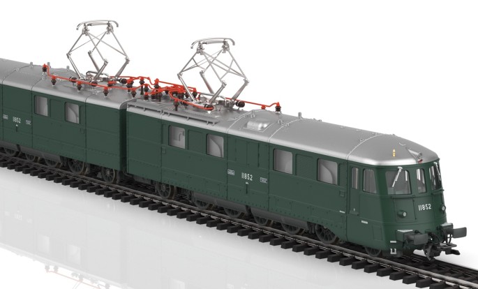 Die Ae 8/14 ist eine schweizer Doppel-Elektrolokomotive mit beeindruckenden Ausmaßen - sowohl im Vorbild als auch im Modell. Die 11 852 war im Vorbild die Weiterentwicklung der Ae 8/14 mit der Nummer 11 851. Das Antriebskonzept wurde unverändert übernommen, allerdings wurde die Leistung merkbar auf ca. 11.000 PS gesteigert. Neu war vor allem der neue Lokkasten mit seinem für die damalige Zeit modernen und fast aerodynamischen Design. Ihre Spitznamen "Landilok" erhielt sie übrigens wegen der schweizerischen Landesausstellung auf der sie 1939 zu sehen war. Märklin präsentiert die imposante Maschine 2024 als komplette Neukonstruktion.